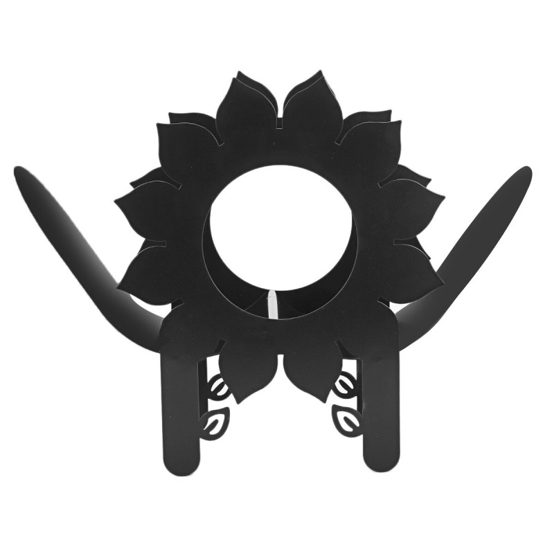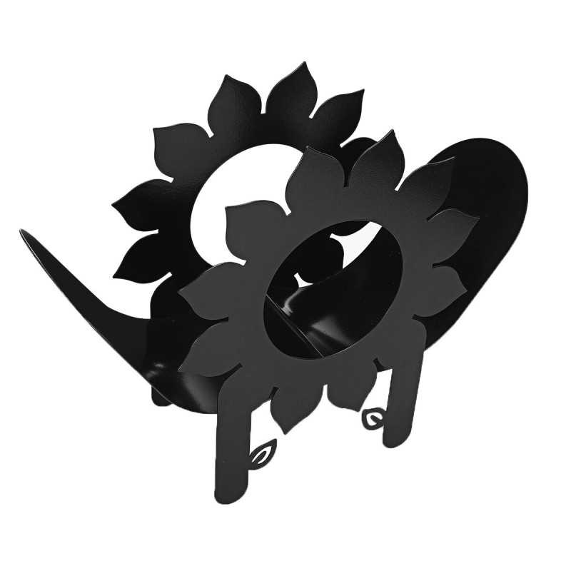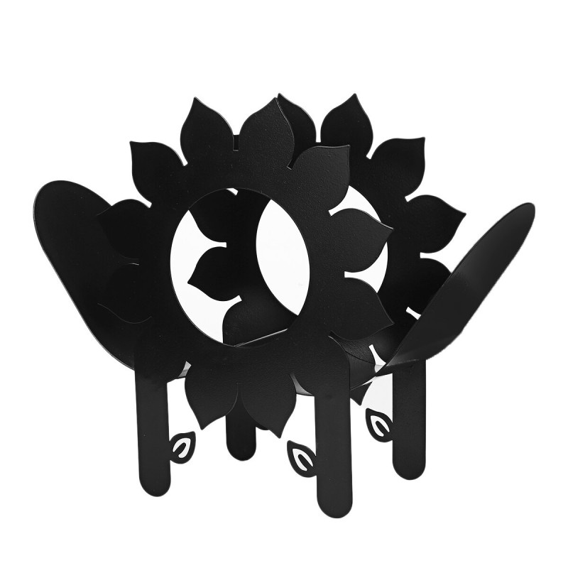 3.This Black powder-coated Cow/Elk/Sun flower shaped bathroom tissue holder happily hangs out in your bathroom, completely free standing and portable with the capacity to hold 7 standard rolls of toilet paper.