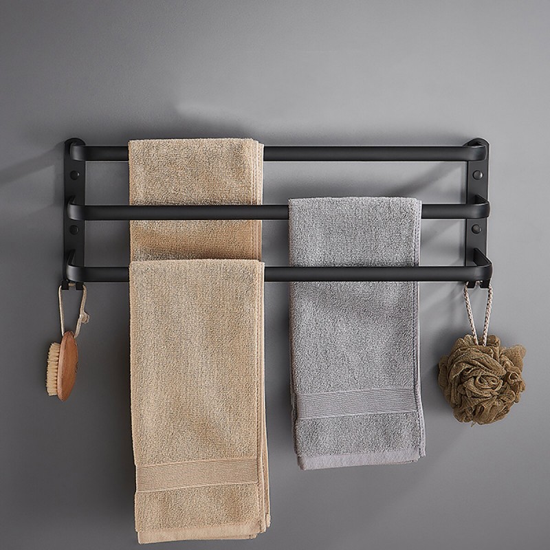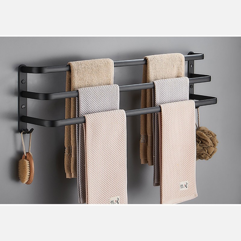 3. FAST DRYING TOWEL BAR: Three leveled bars can hang towels with about 2.8-3.5-4.5 inches between the bars, this design providing enough space for drying towels.