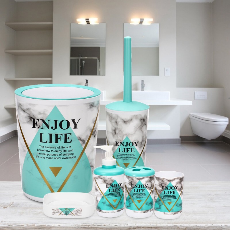 Description :  6Pcs Toiletries Bathroom Set Cup Toothbrush Holder Soap Dispenser Tray for Bathroom Decoration AccessoriesFeatures :- Safe material with smooth edges is good for everyday use...